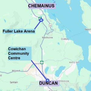 PLEASE NOTE: All games are at Fuller Lake Arena (Chemainus) or Cowichan Community Centre (Duncan), which are 15 minutes' drive from each other. NO tournament games are played at Lake Cowichan Arena. Please don't confuse Lake Cowichan with Cowichan Community Centre!